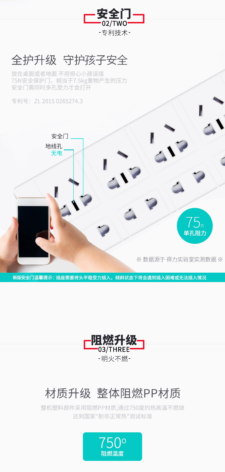 公牛(BULL)GN-410 經(jīng)典款電源插座接線板 4孔位 全長5米
